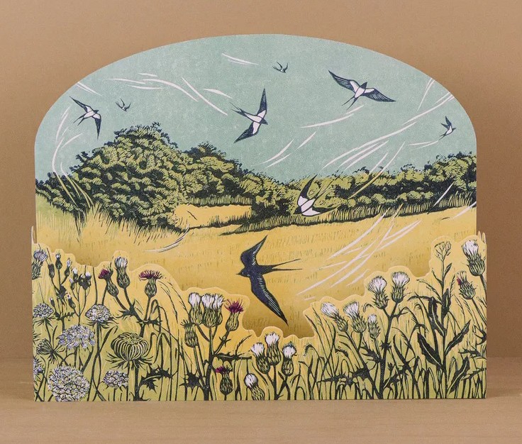 The die-cut cards are 148mm x 210mm, they are packed with an envelope in a biodegradable cello sleeve.