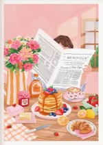 This print captures the warmth of a slow, sunlit morning shared over pancakes and fresh coffee. Featuring fluffy pancakes drizzled in maple syrup, fresh berries, a buttery croissant, warm coffee, and a blooming bouquet, this illustration celebrates the simple joy of a relaxed morning well spent.