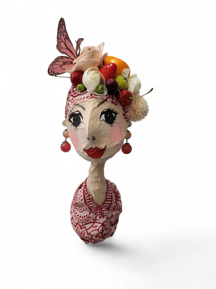 This beautiful and elegant head is fun and a lovely representation. Beautifully detailed and finished with luscious lashes and brighy red lips.