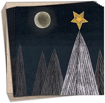 A pack of six lovely little Christmas cards - bright and cheerful contemporary cards. Supplied with kraft envelopes. Left blank for your own message.