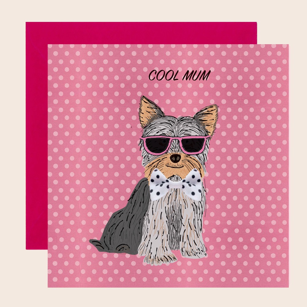 This design is based on an original silk-screen print and is hand-finished with ribbon bow. Cards are blank inside and finished with a pink kraft envelope.