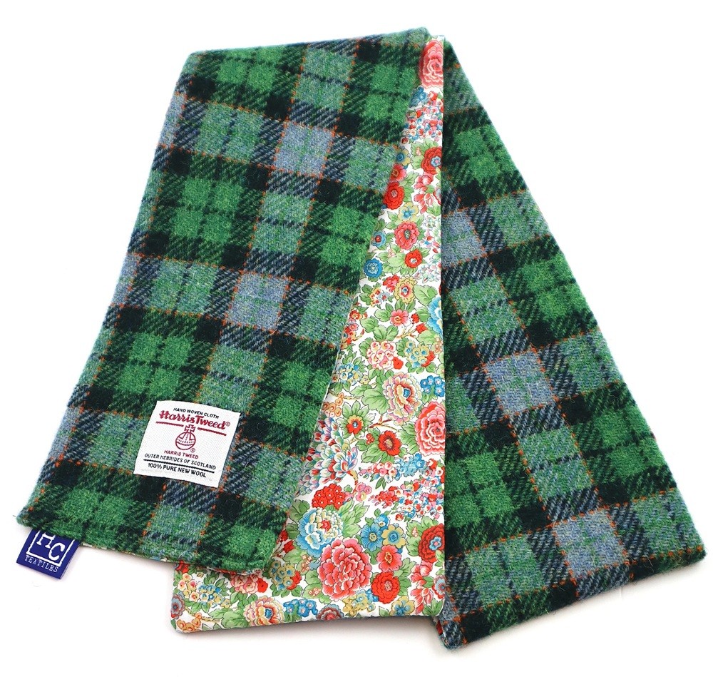 Double sided, one side is Harris Tweed and the other 100% pure cotton Liberty tana lawn with a multi coloured flower print.