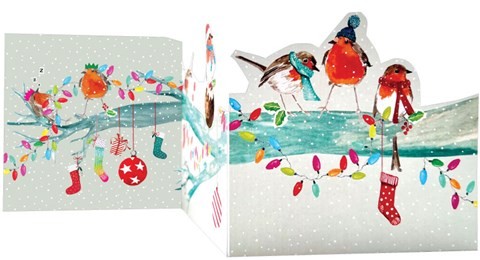 Brand new concertina cards with beautiful watercolour illustrations both back and front, across a double fold, each with stunning die cut details.