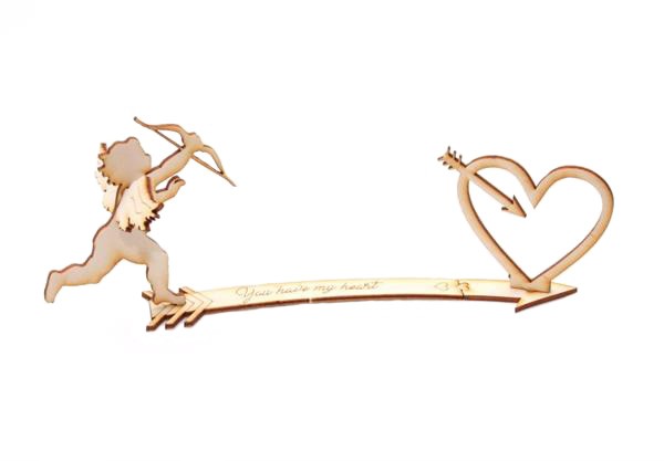 Lovely laser cut card with a cherubic Cupid firing his arrow towards someone's heart. A lovely surprise for a special person. Card is easy to assemble, and may be kept for a charming keepsake.