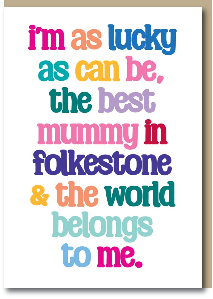 A fun and colourful card with a Folkestone theme that says it all! Beautifully printed with eye catching colours. A fun card to give and receive.