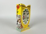 An intriuging 3D card featuring a prettily illustrated vase that transforms from a pretty 3D card into a holder for a small (bud) vase. The card is cleverly designed to make 3D scene and measures 100mm wide and 50mm deep, and 218mm high. Back panel for you to write your own greeting.