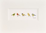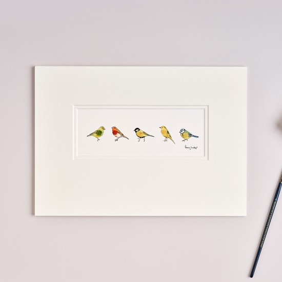 This gorgeous and very popular print is perfect for any bird lover and features a Greenfinch, Robin, Great Tit, Yellow Wagtail and Blue Tit. Each bird is hand finished with sheep's wool to give a luxurious, 3-d effect.