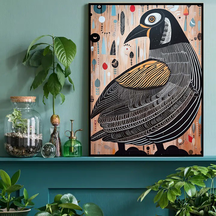 Bring artful and on-trend style to any room with this folk art style vintage black and white print! In a naive painting style, this print will add charm and flair to any wall. Make a statement with this beautiful and unique piece of art!