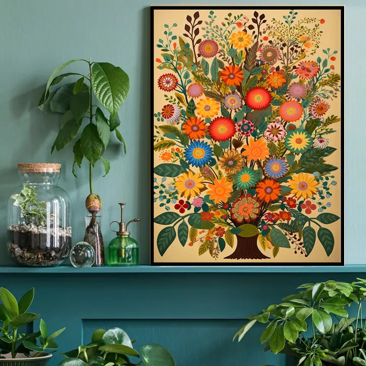 Bring artful and on-trend style to any room with this folk art style vintage black and white print! In a naive painting style, this print will add charm and flair to any wall. Make a statement with this beautiful and unique piece of art!