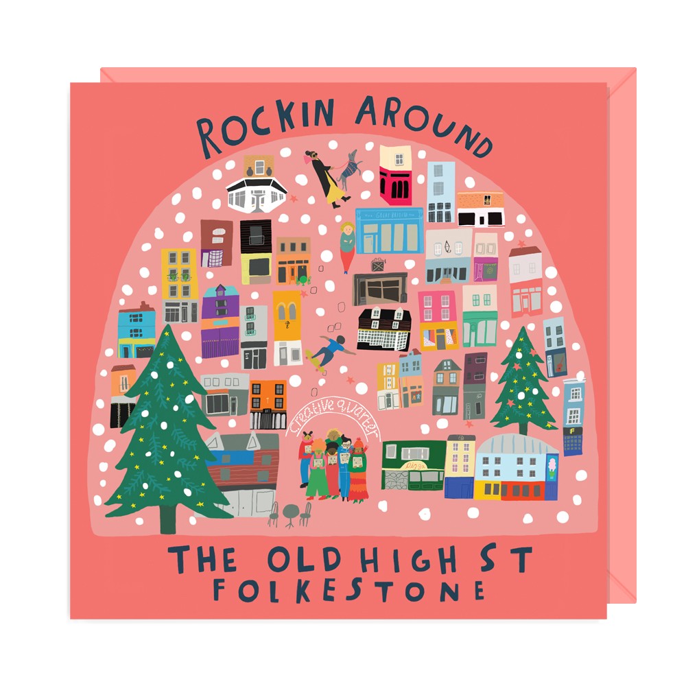 Our new range of local Christmas cards, featuring Folkestone & Hythe. Fun and original way to send your festive wishes.These are high quality cards are printed on Invercote stock board with gold or silver foil details. Each card has a contrasting coloured envelope.