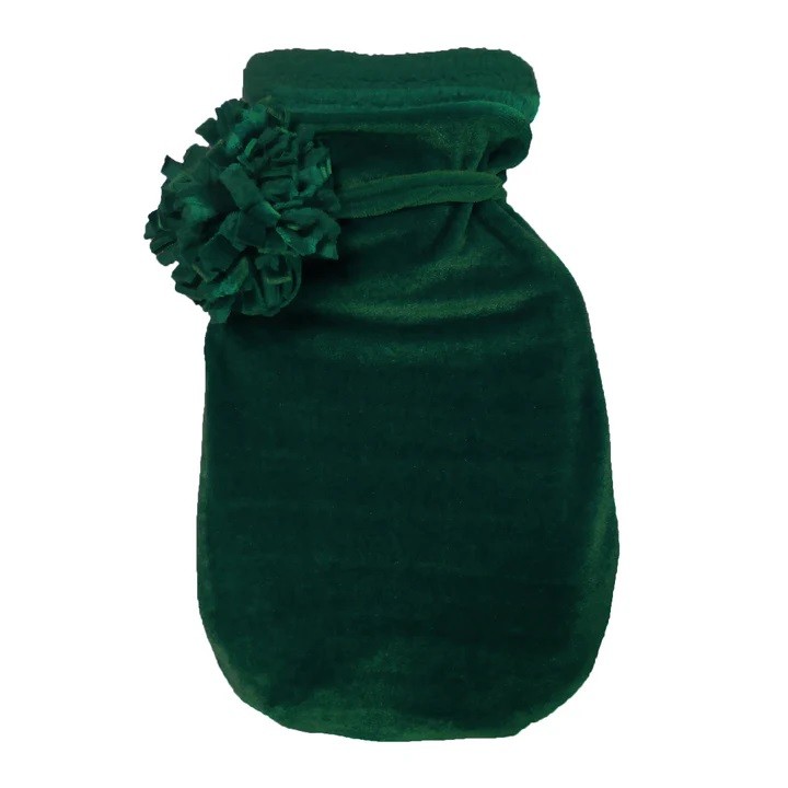 Sooooo comforting, and a mutitude of uses. Smart enough for use in any settings. Lovely velvet Mini Hot water bottles in jewel-like colours. Pleated fleece lining and a pretty pom pom finish