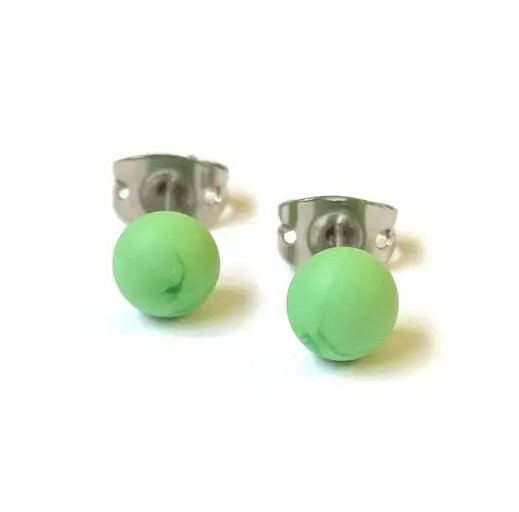 A lovely little pair of hand made glass stud earrings in a lovely frosted leaf green.