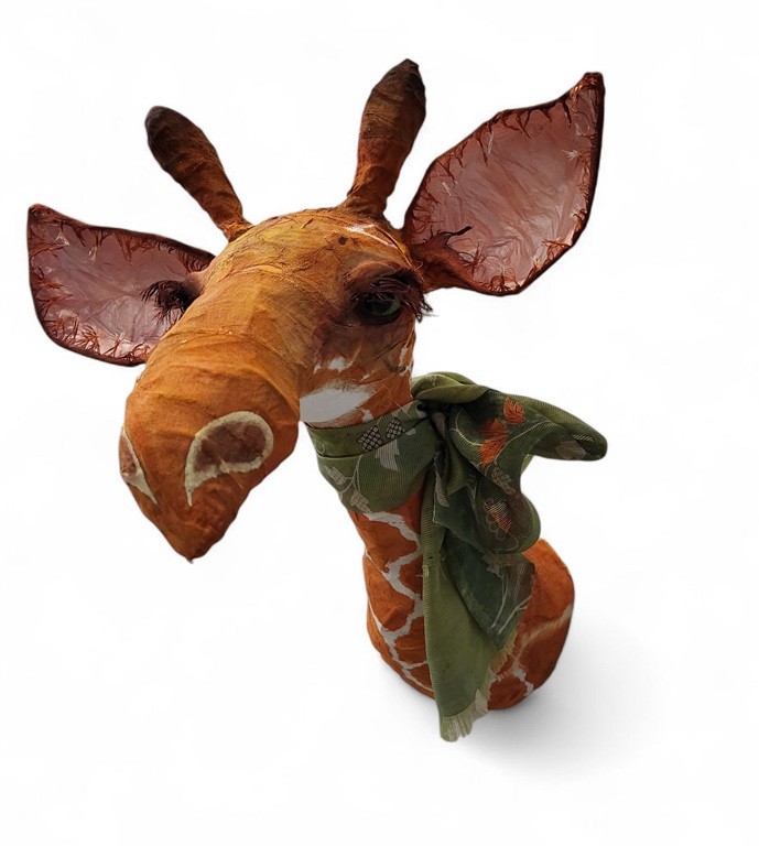 This colourful and elegant head is fun and a lovely representation. Beautifully detailed and finished with a green scarf suitable for any safari.