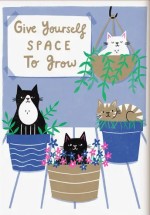 Give Yourself Space to Grow print on A4 heavyweight cat art print. Brighten up your walls with this uplifting and mindful print of little cats in plant pots. Print of an original illustration.