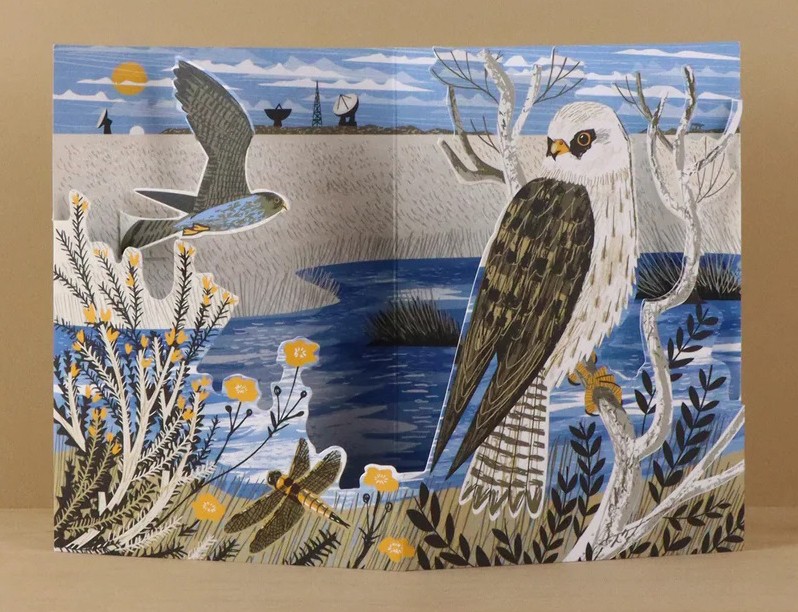 Goonhilly Red-Footed Falcons die-cut card by Matt Johnson.