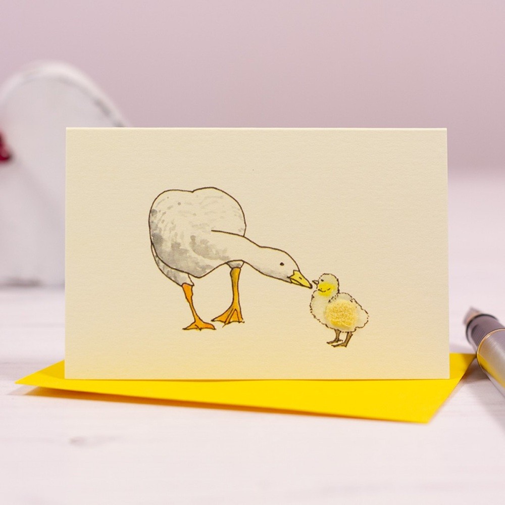 A pair of fine geese. The baby goose is hand finshed with a puff of real sheep's wool.