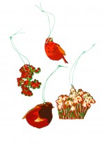 This pack of Hedgerow Wooden Decorations includes four different poplar ply wood decorations featuring vintage hedgerow designs. The decorations are hand screen printed and laser cut, each with a coordinated waxed cotton hanging loop. Ideal for decorating your Christmas tree, or hanging around your home to add some festive cheer!