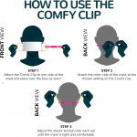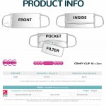 A comfortable, soft shielding face mask with elastic straps, Comfy Clip and ViralOff virus reduction.