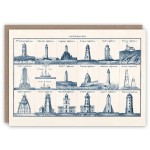 Greeting card illustrating famous lighthouses around Britain and Ireland. Printed in England on a light cream, 300gsm carbon-neutral Italian paper, made from 100% recycled post-consumer waste.