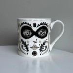 A mysterious figure in a decorative mask, ready for the ball! Illustrated on a white bone china mug with a decorated handle.