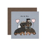 This design is based on an original silk-screen print and is hand-finished with ribbon bow. Cards are blank inside and finished with a black, striped, kraft envelope.