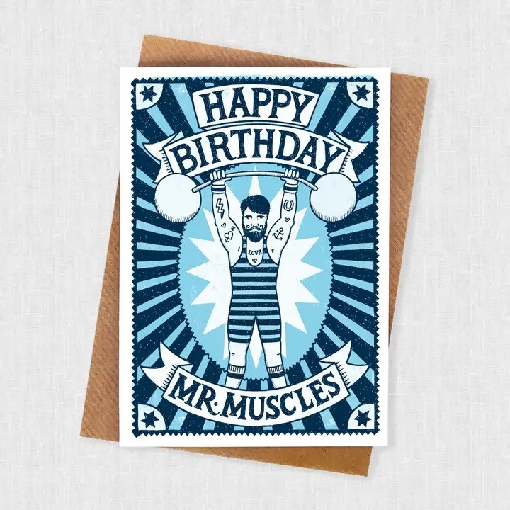 The perfect birthday card for all the super strong men who love weightlifting and keeping fit.