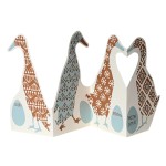 These extra-special, double-sided, foldy concertina cards are of 300gsm smooth ivory uncoated stock, litho-printed in England on responsibly sourced stock in vegetable oil-based colours that are friendly to the environment. It has no particular message except ‘With Love’, but there are places to write your name and the name of the recipient on the eggs.