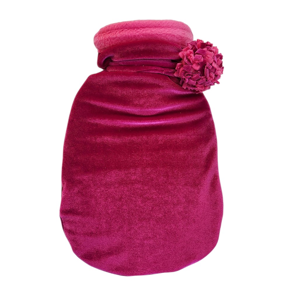 Sooooo comforting, and a mutitude of uses. Smart enough for use in any settings. Lovely velvet Mini Hot water bottles in jewel-like colours. Pleated fleece lining and a pretty pom pom finish