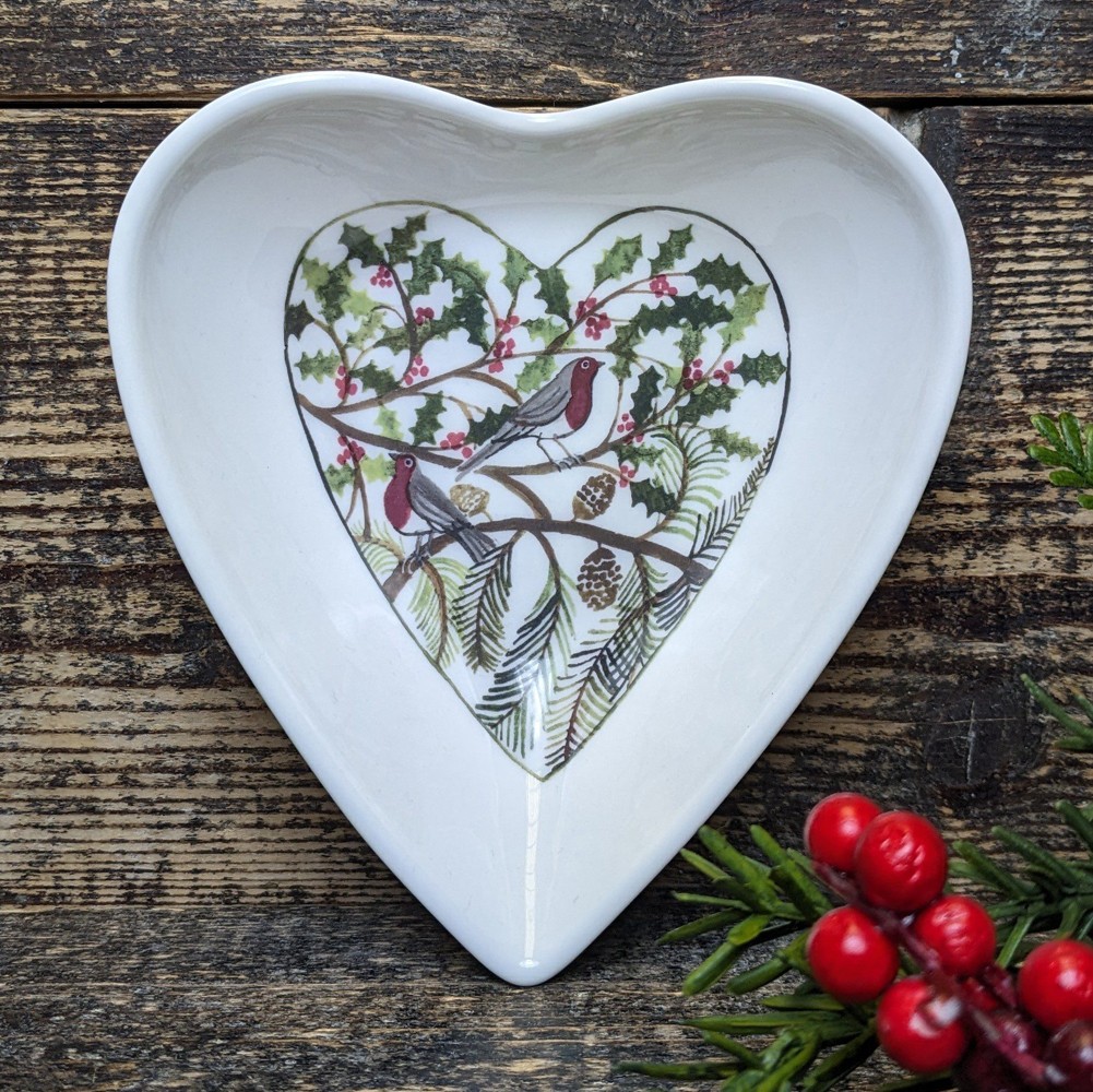 Fine bone china with a charming seasonal illustration. Pretty little bowl for festive treats, nuts, etc.