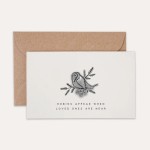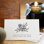 The token sits on a branch illustration with the message "robins appear when loved ones are near". The card is blank inside and slides into a brown paper envelope.