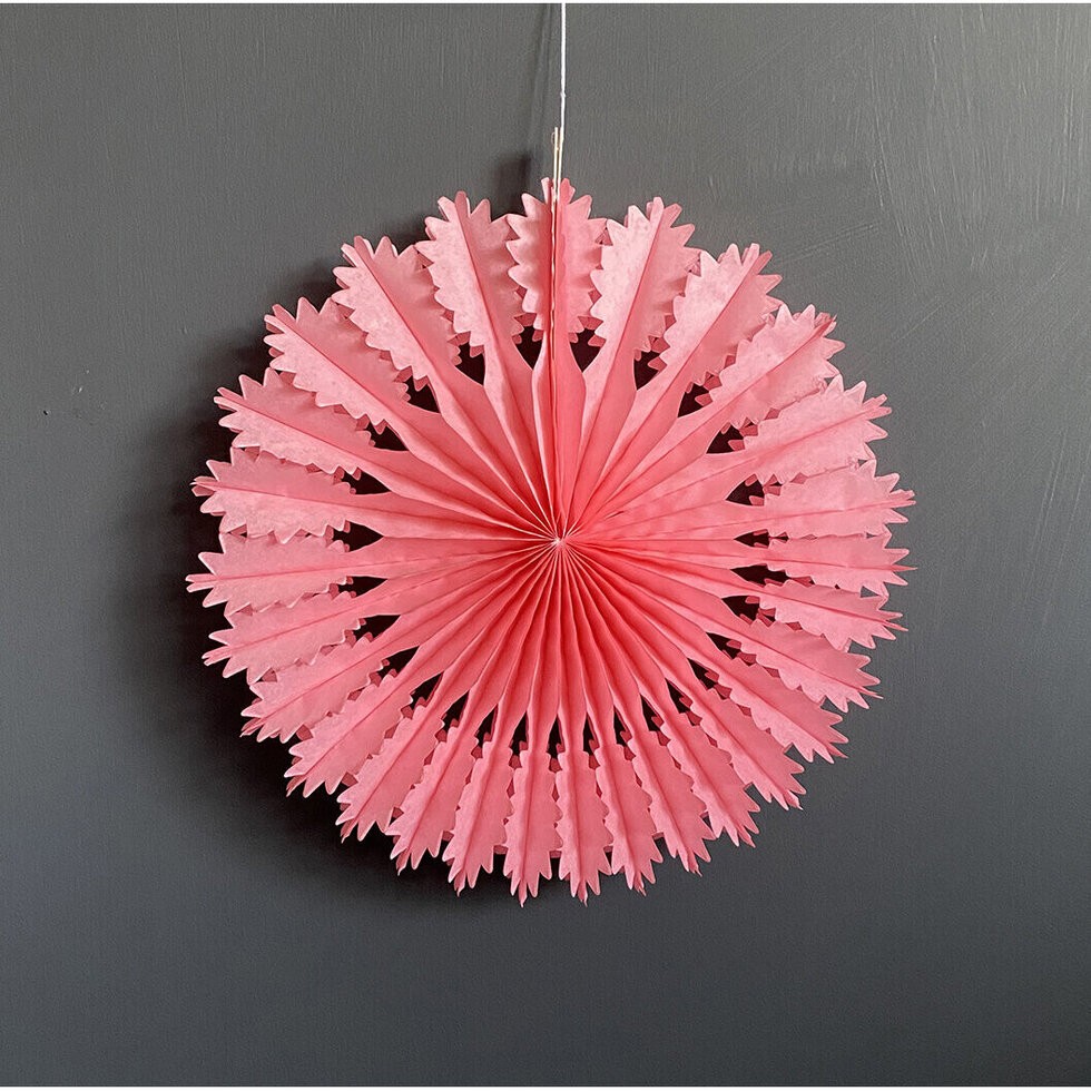 Decorative paper snowflake fan. Eco friendly, may be used over and over. Folds back down for easy packing away.
