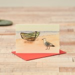 This very popular card features a wooden fishing boat with a fluffy seagull reminding all of the seaside and travels in this iconic boat.