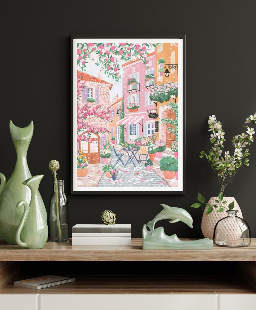Step into the picturesque streets of the South of France with this art piece which has been hand illustrated by the artist.