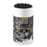 Starry Nights are back again, featuring on one of these large cylinder match tubes. This wintery scene is wrapped perfectly around a cylinder to give the view of a town square on Christmas Eve - what more could you ask for on your fireplace? The goil foil stands out beautifully on the black background and you cannot help but think this design is the perfect addition to your Christmas festivities.