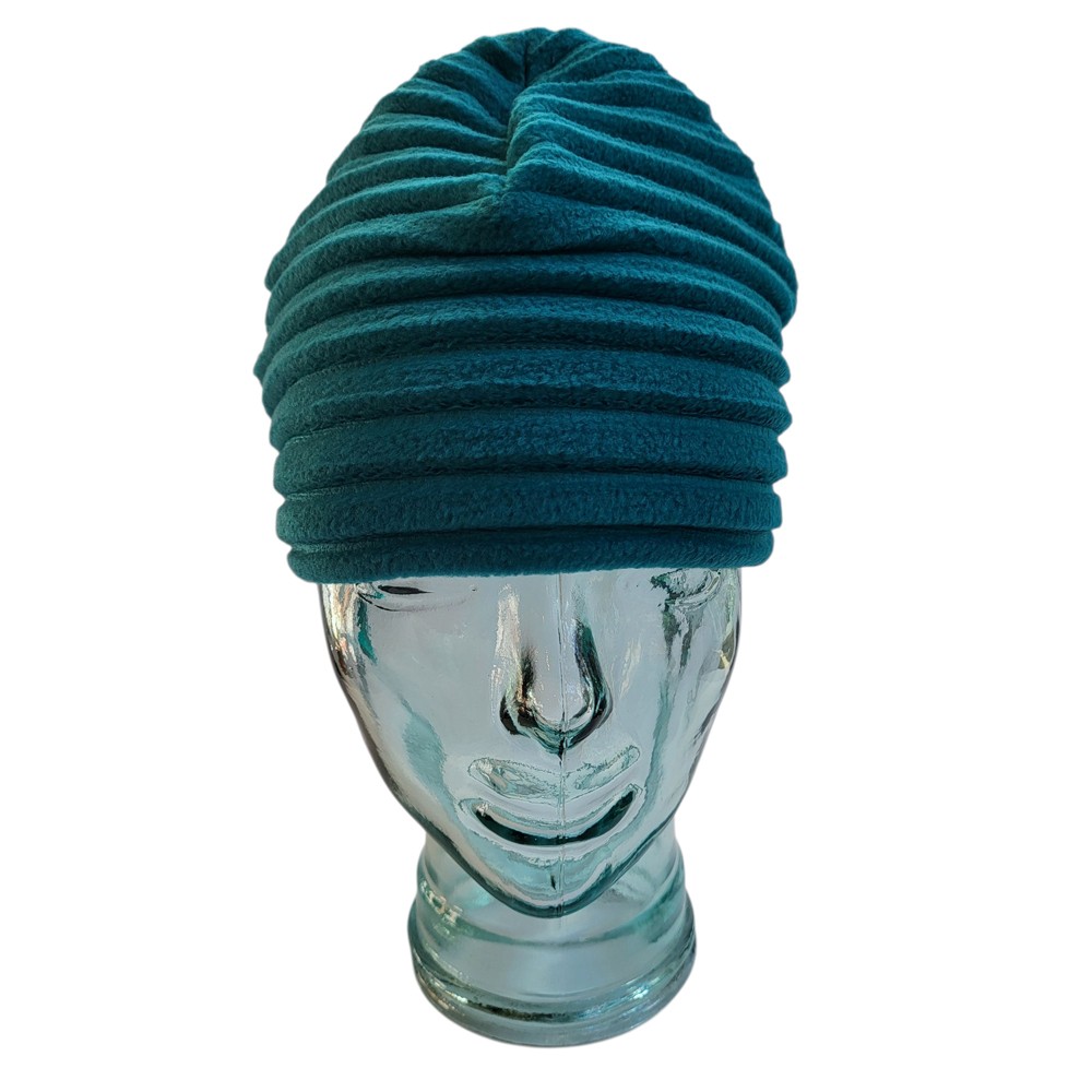 Warm and cosy, easy to wear pleated beanie. Stretchy fabric ensures on size fits all.