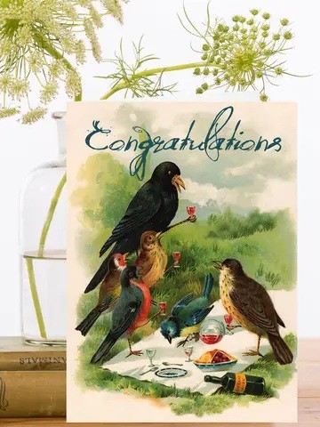 A card with designs created from vintage images & ephemera, inspired by French perfume bottle labels to seed packets, elegant wallpaper to railway posters. Many different elements are reworked & recreated into bright, vibrant contemporary designs, a fusion of the old & the new.
