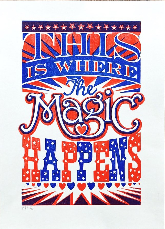 This Is Where The Magic Happens is an excellent quality lino cut print.