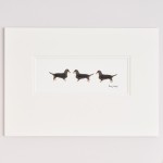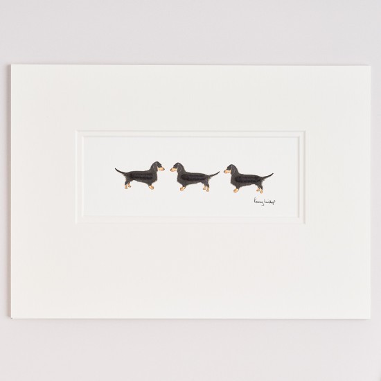 Dachshunds are soooo popular and have such great characters this print features 3 in a row, 2 facing to the left and the first dog facing to the right. This makes a lovely gift for any Dachsie owner or general dog lover. All of the dogs are hand finished with a roll of sheep's wool to give a really lovely, 3-d effect that brings them to life.