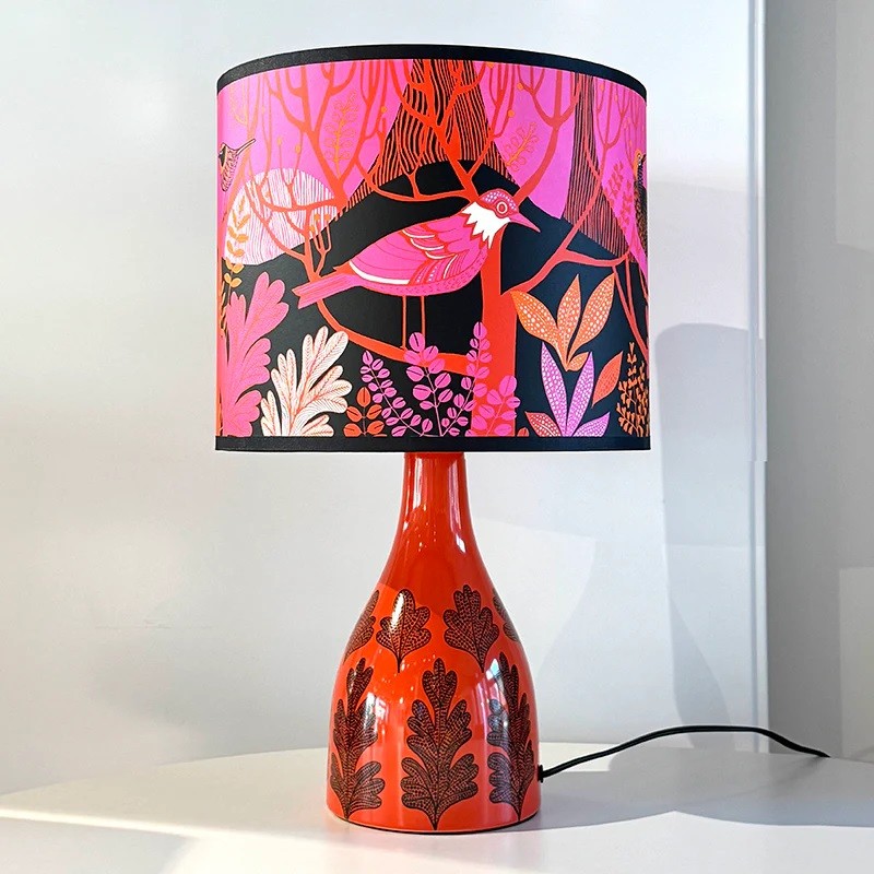 These ceramic lamp bases with are illustrated with a beautifully detailed print inspired by a large collection of house plants. This one is in hot orange-red that will make any home more exciting!