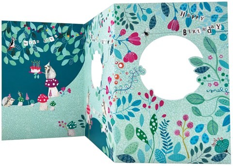 Brand new concertina cards with beautiful watercolour illustrations both back and front, across a double fold, each with stunning die cut details. Each card has a blank space to write a personal message.
