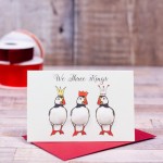 These mini Christmas cards featuring three happy puffins are so popular! The birds are hand finished with a roll of white sheep's wool, so the cards are very tactile and will always raise a smile.